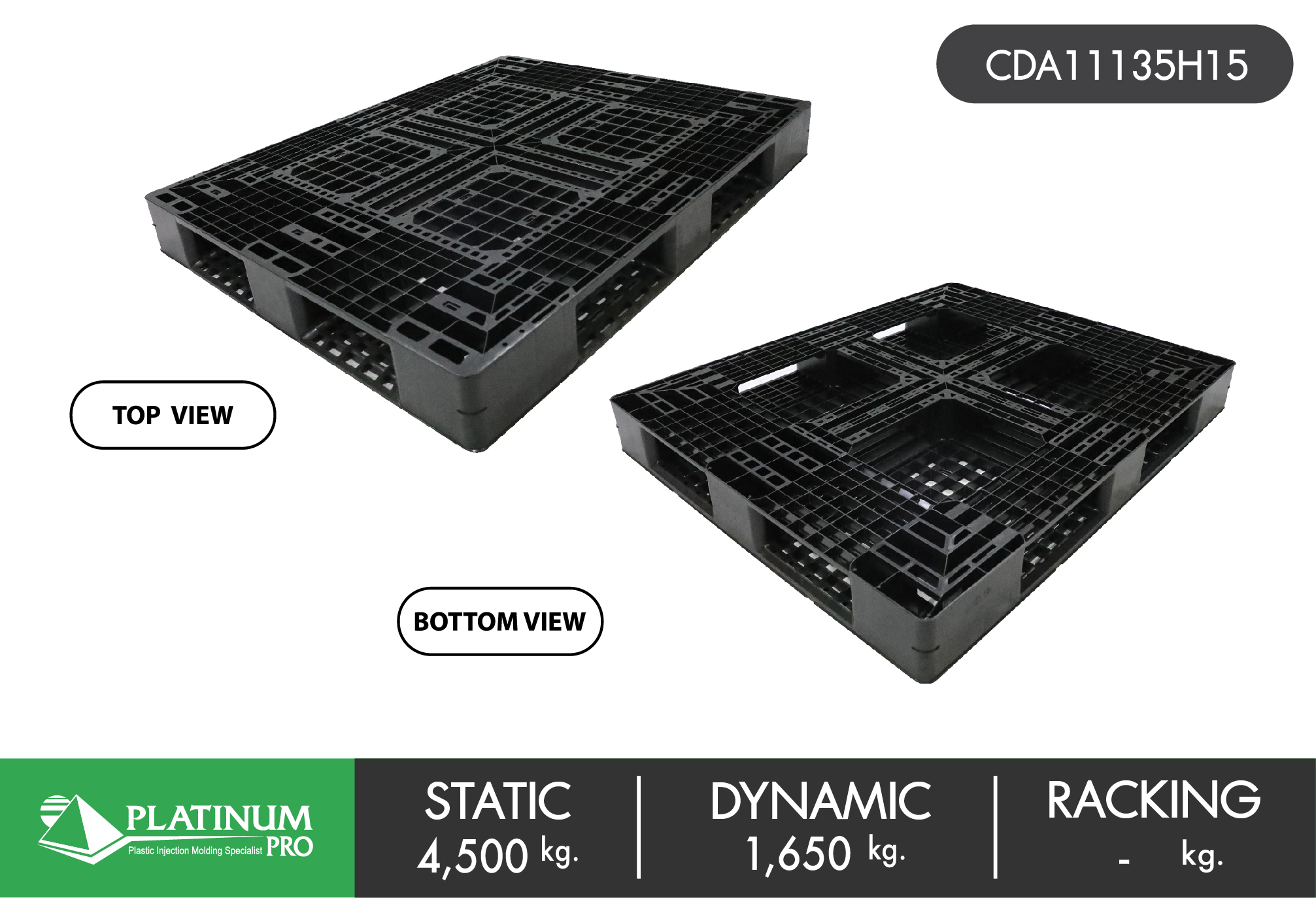 พาเลทพลาสติกส่งออก : CDA11135H15 Size : 1,100 x 1,350 x 150 mm.